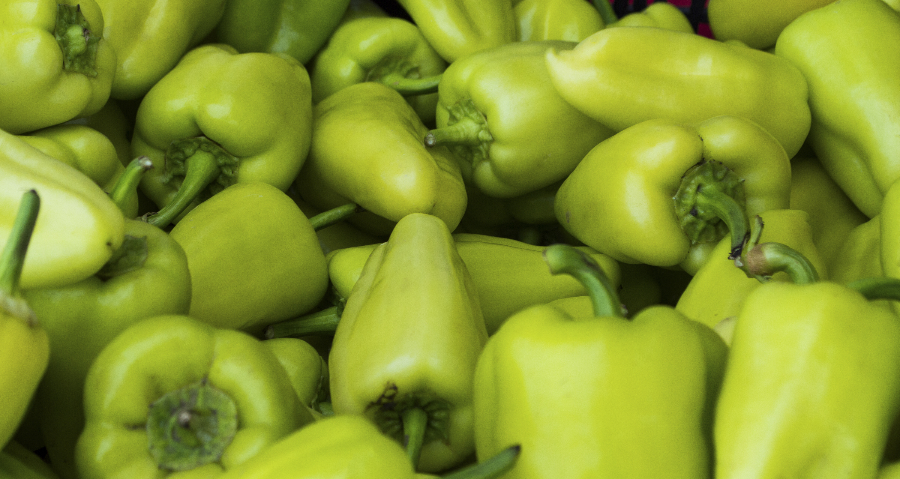 Это изображение крупным планом представляет собой настоящий праздник для глаз, демонстрируя изобилие свежих, сочных зеленых болгарских перцев. Их яркий, насыщенный зеленый цвет, варьирующийся от светло-салатового до более глубоких изумрудных оттенков, говорит о свежести и спелости.