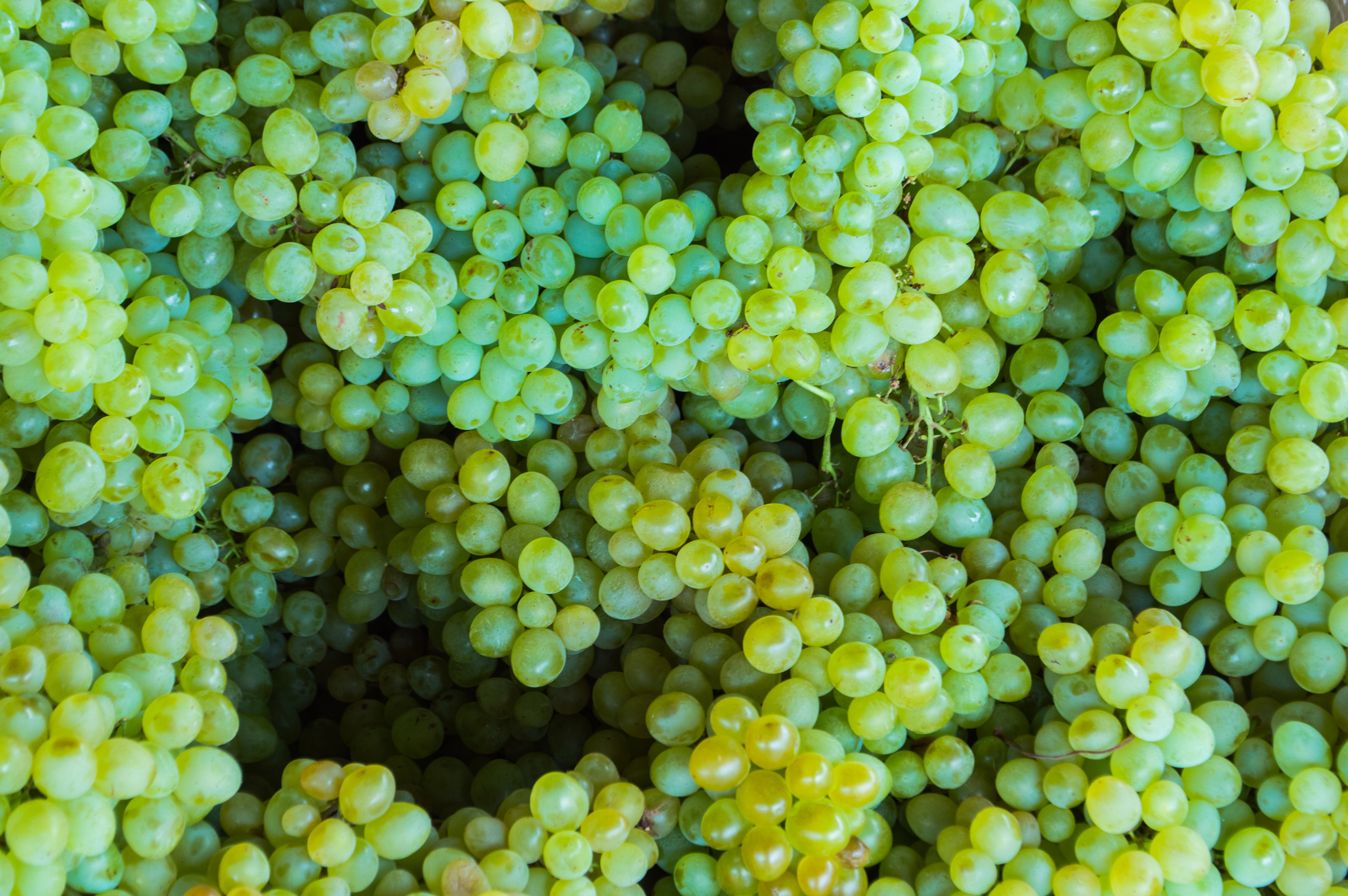 This image presents a close-up view of an abundant harvest of ripe green grapes, inviting the viewer to immerse themselves in its natural beauty and texture.