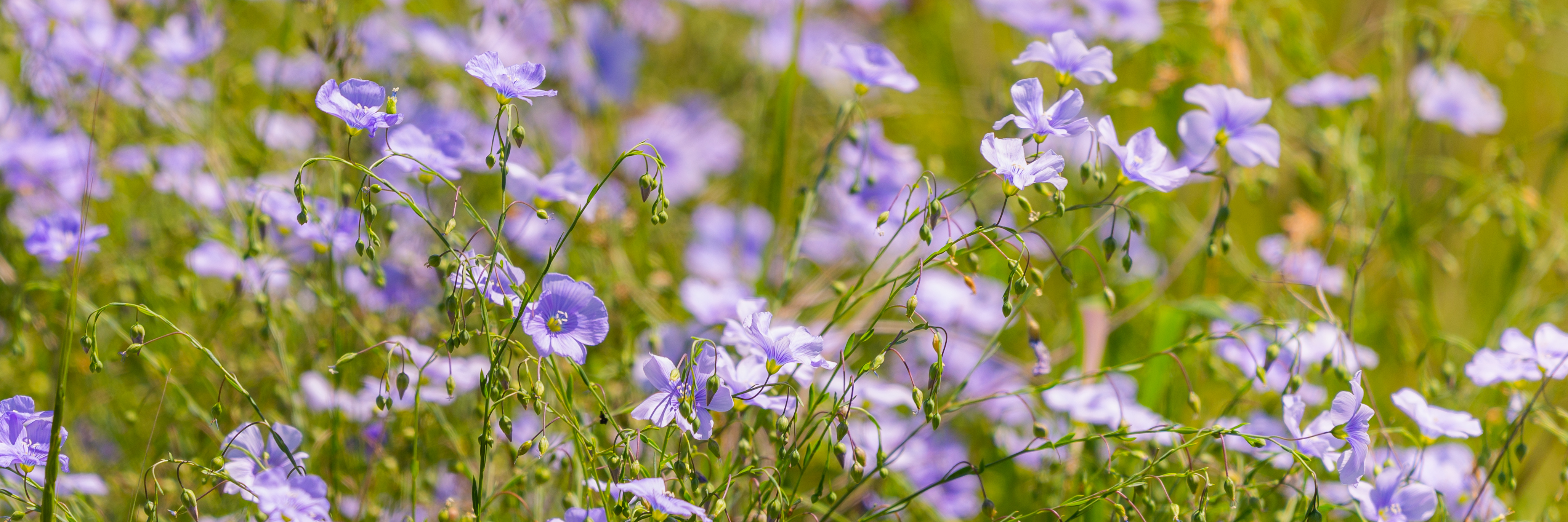 На изображении представлено живописное поле льна, где в полном расцвете стоят высокие стебли с нежными голубыми цветами, словно разбросанные по земле маленькие морские волны. Сцена разворачивается в солнечный день, когда лучи света мягко проникают сквозь листья, создавая игру света и тени на земле. Вдали виднеются ряды льняных растений, уходящие вдаль и создавая ощущение глубины и простора. Ветер слегка колышет стебли, придавая динамику и живость сцене. Цветы льна, хоть и небольшие, выделяются на фоне зеленой листвы и серо-голубого неба, что делает их особенно привлекательными и романтичными. Это поле — не просто сельскохозяйственная культура, а живописный пейзаж, где природа демонстрирует свою красоту в самых простых и естественных формах.