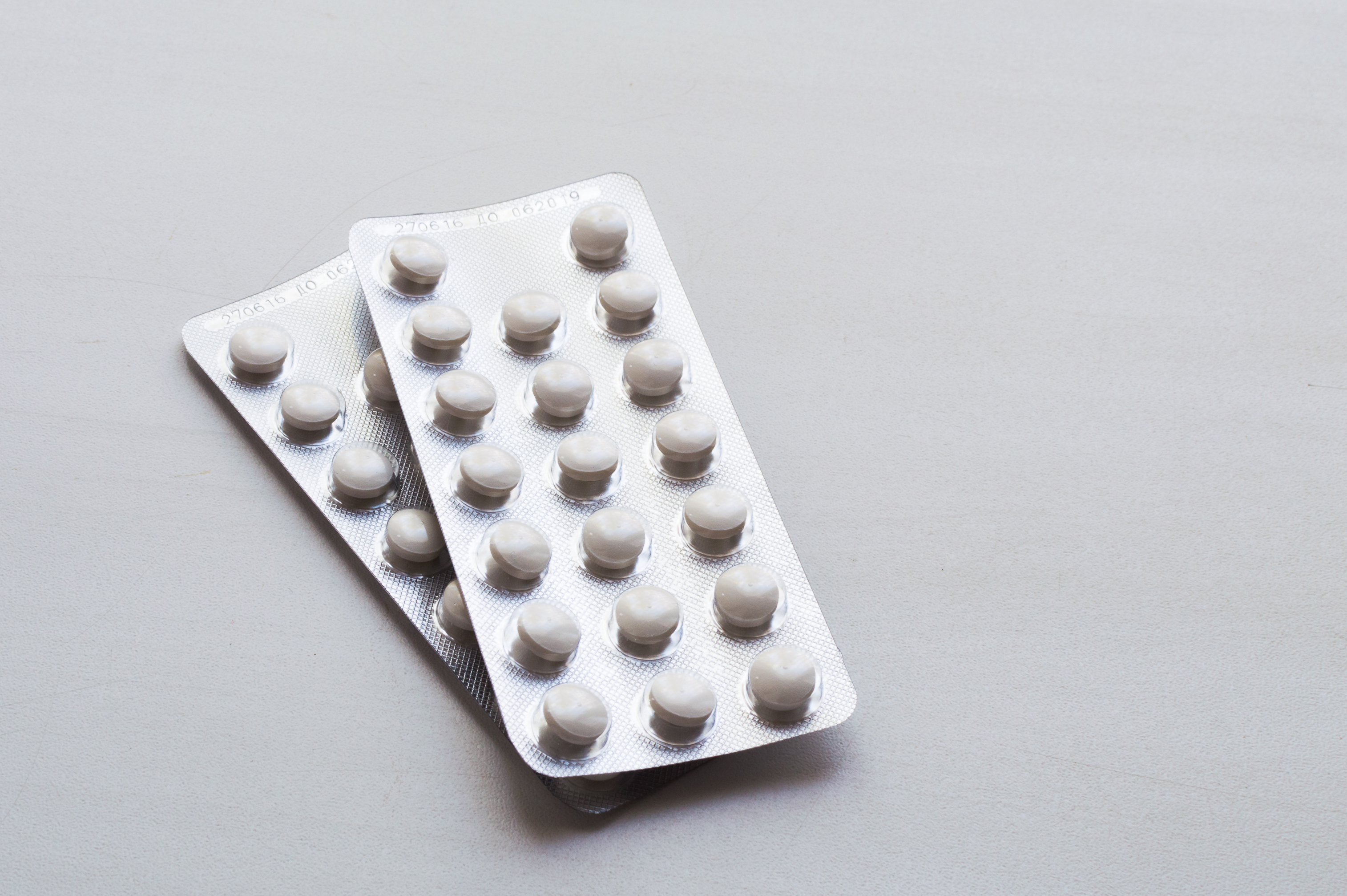 Две упаковки таблеток в блистере на светлом фоне