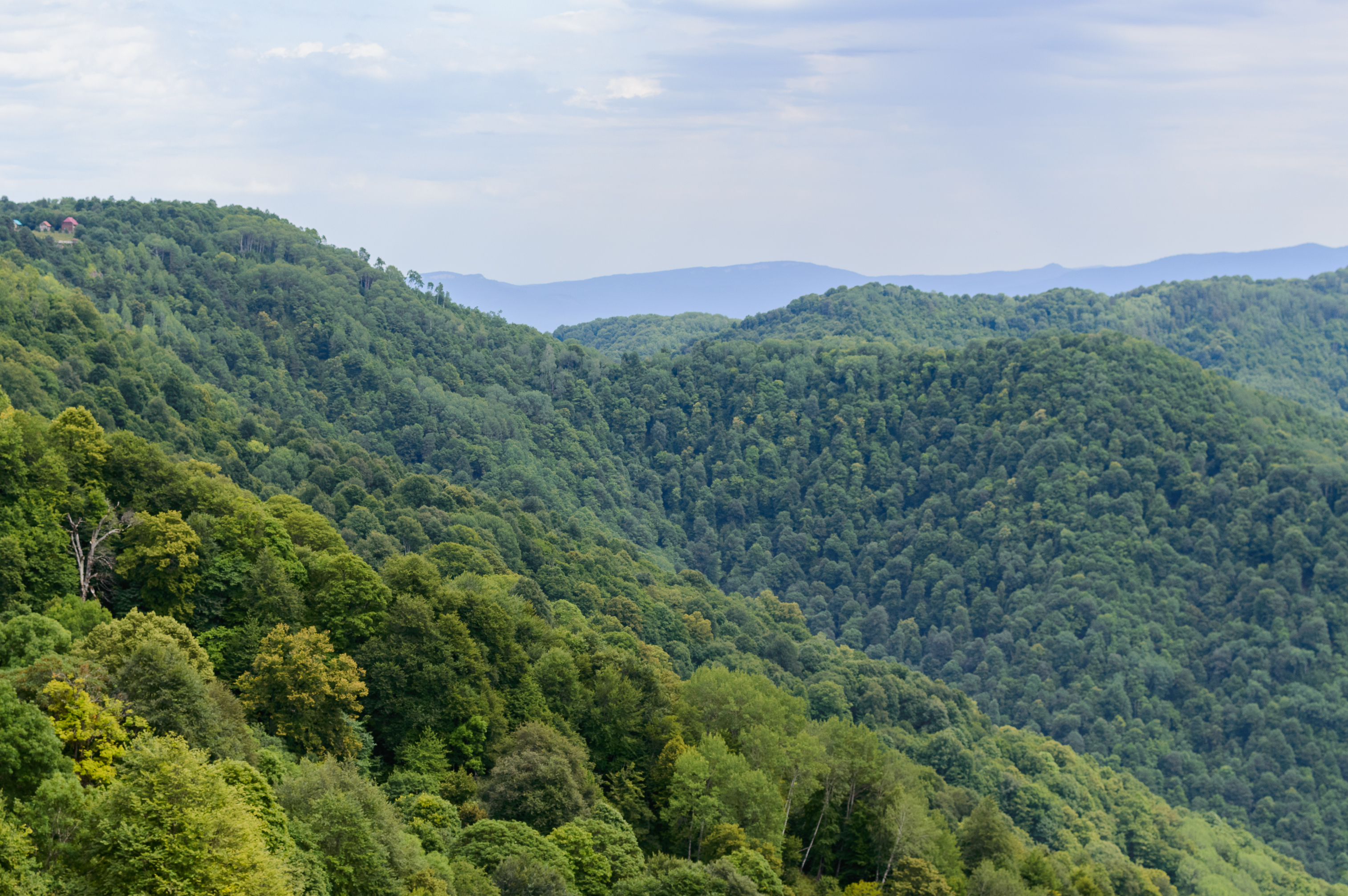 Зеленые горные склоны, покрытые лесом