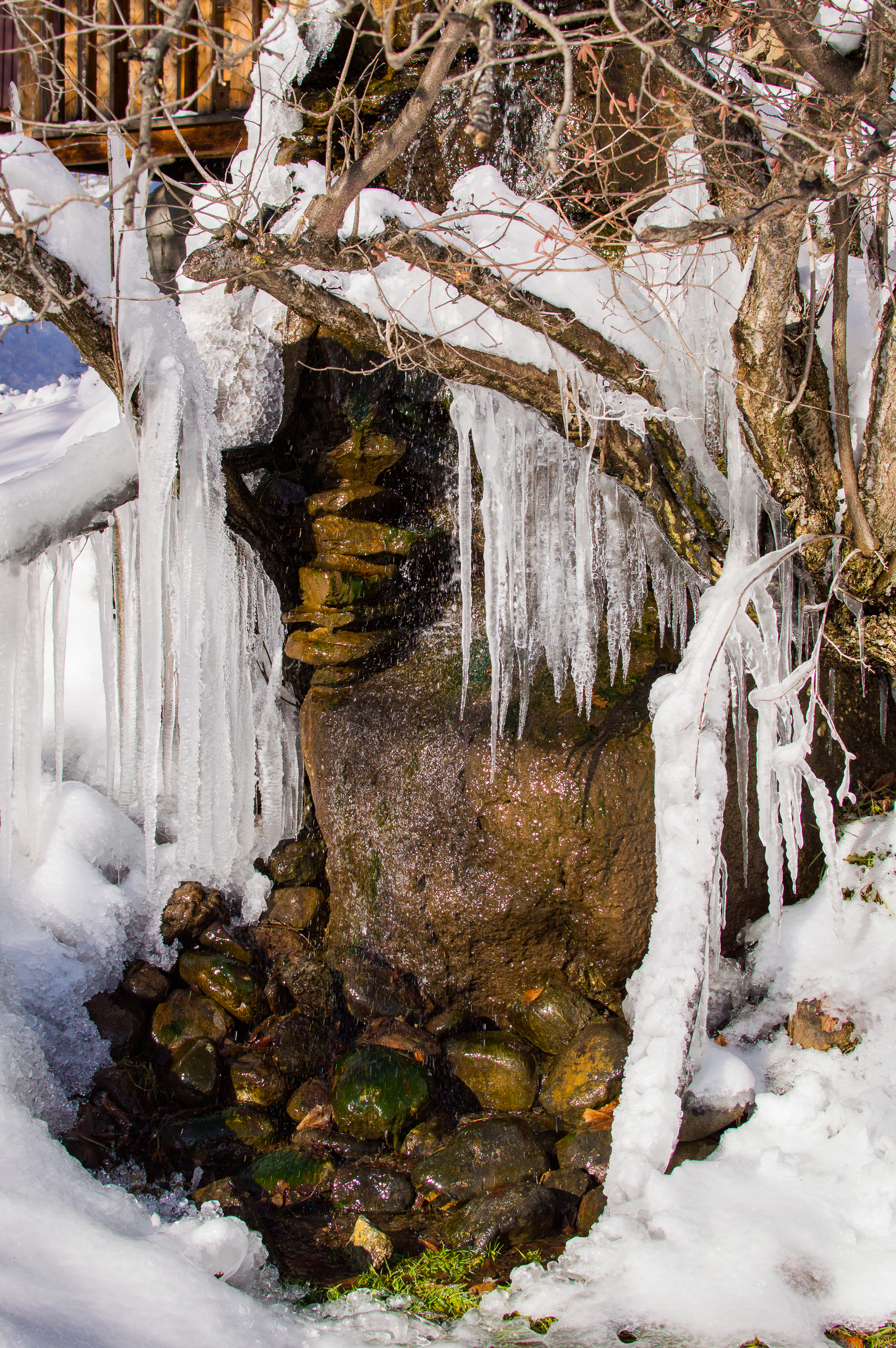 Зимний водопад с сосульками