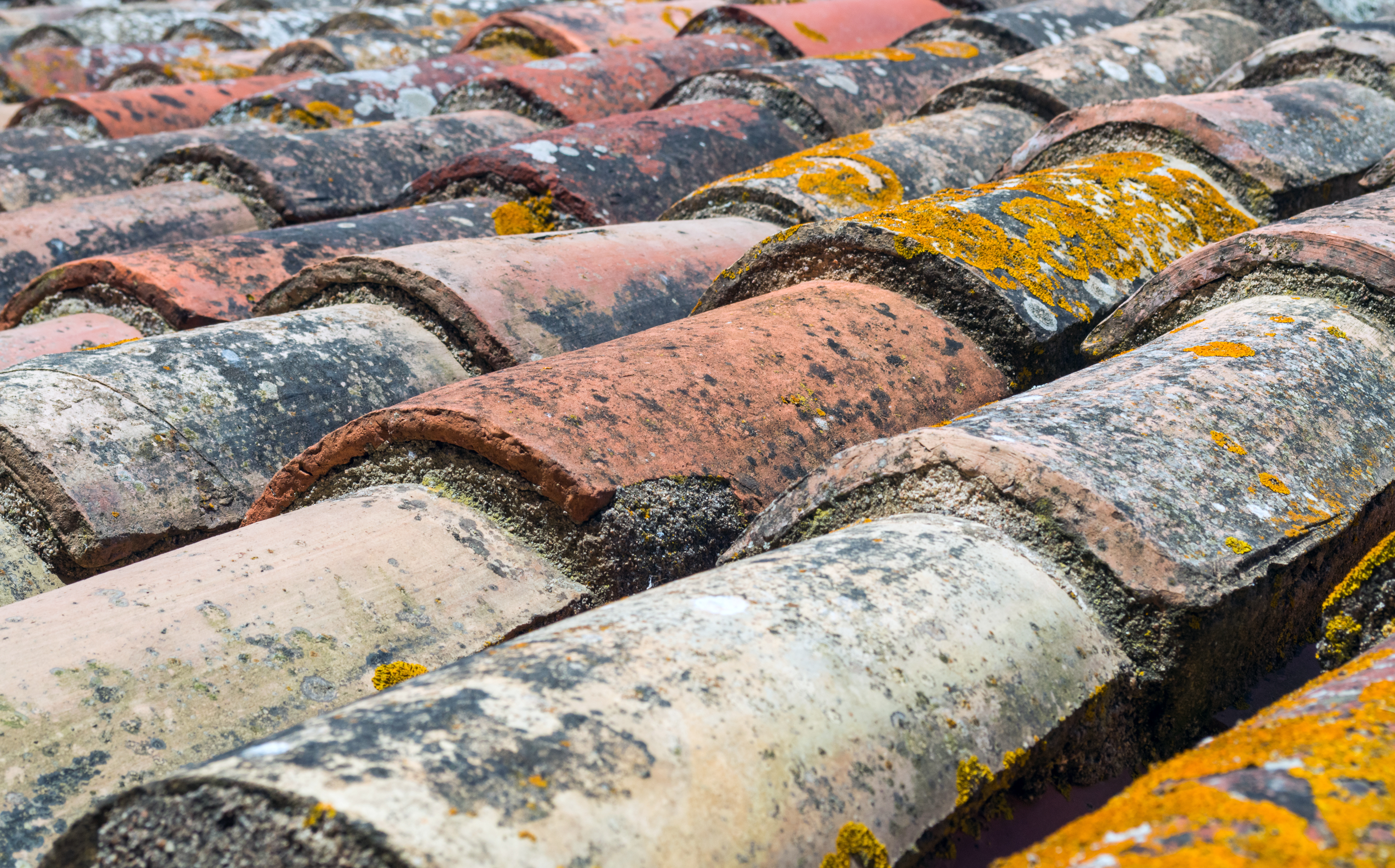 Старые черепичные крыши с мохом