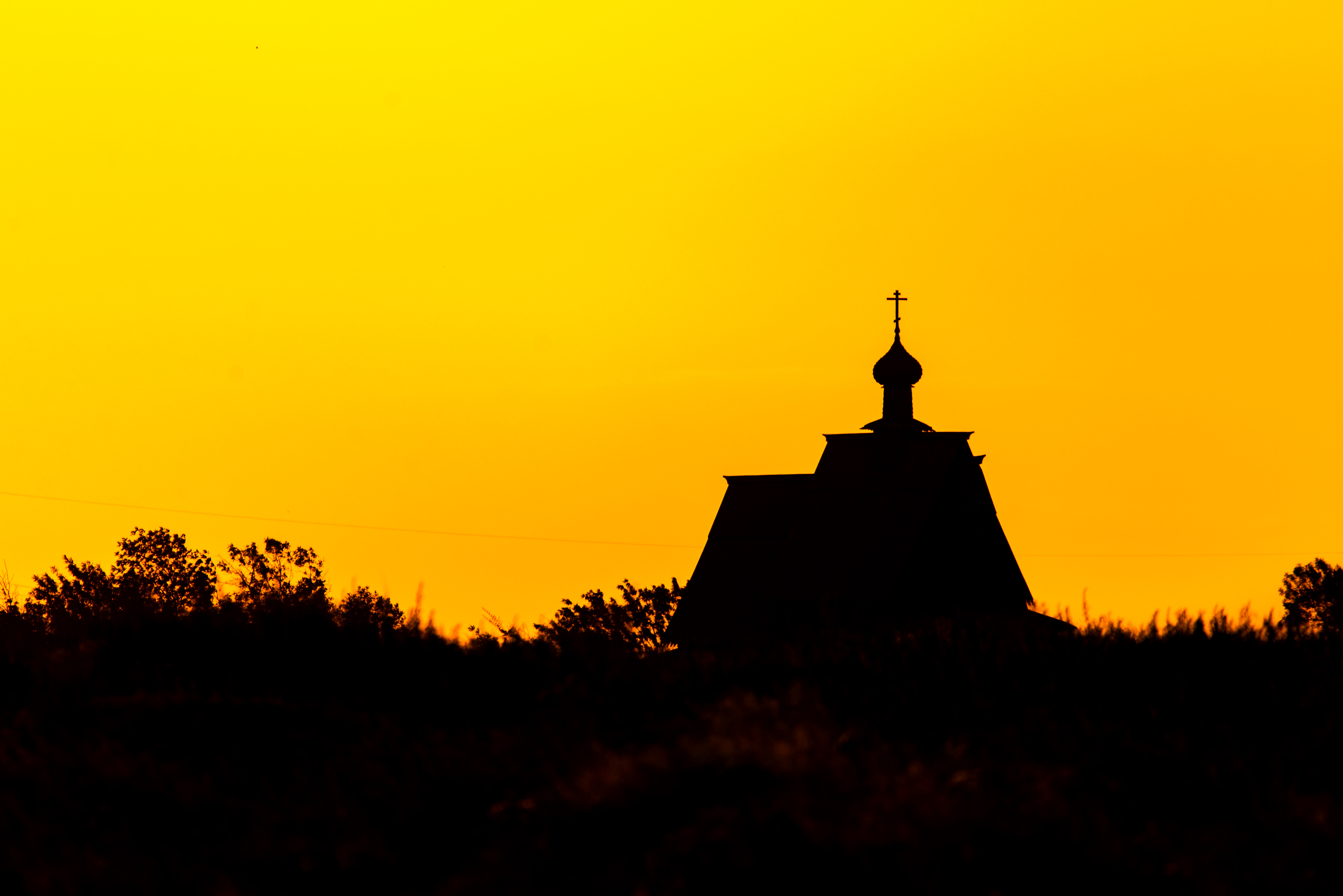 Силуэт церкви на фоне золотого заката