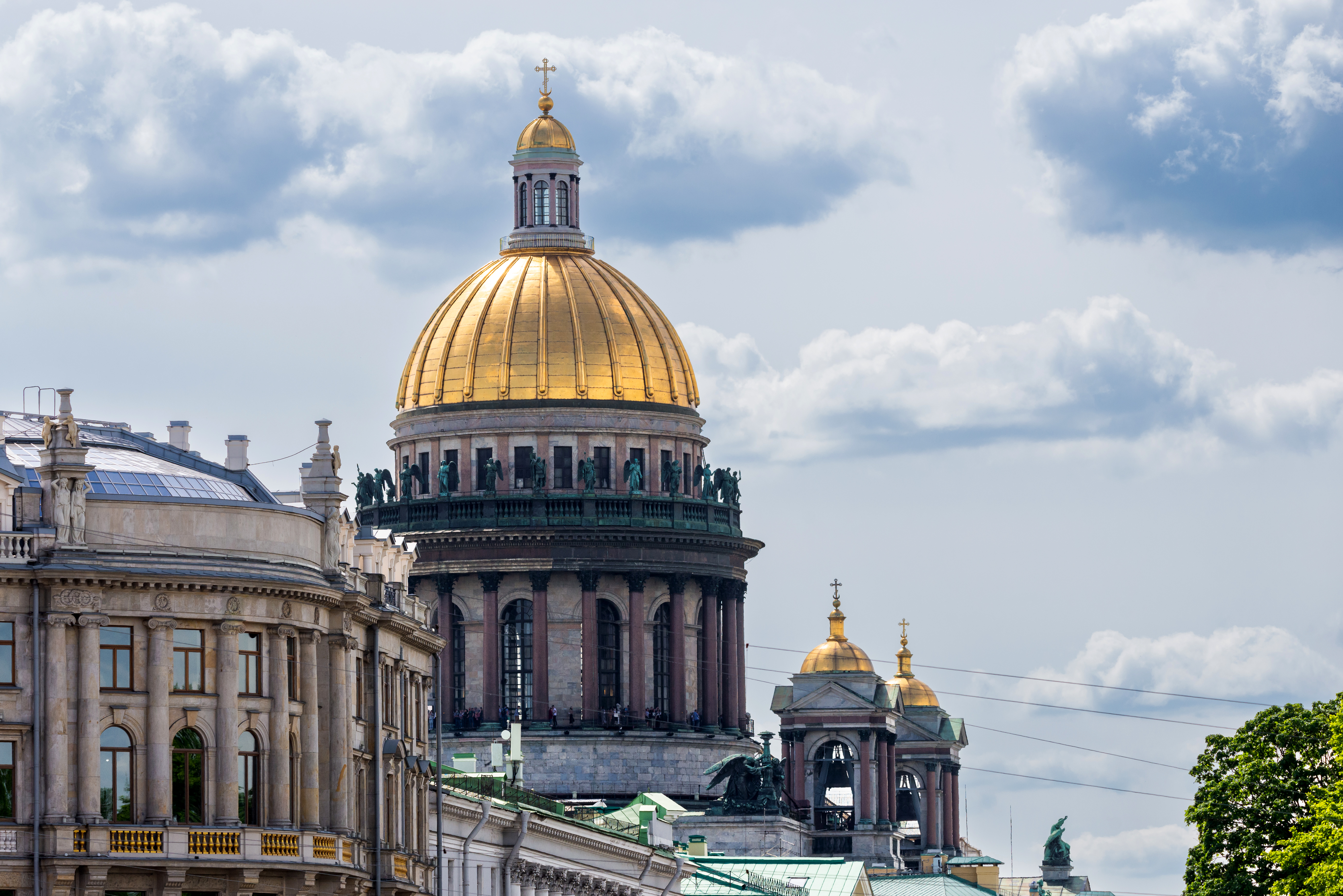 Величественный Исаакиевский собор в Санкт-Петербурге, демонстрирующий свою золотую купол на фоне облачного неба. Архитектурное чудо и символ города, это место несомненно завораживает своей монументальностью и исторической значимостью. Вокруг собора можно заметить знаменитые здания Санкт-Петербурга, а также живописные пейзажи реки Невы и Казанского собора. Собор был построен в 1818 году по проекту архитектора Константина Тона и стал одним из самых знаменитых и впечатляющих зданий города. Его золотой купол, который светится на фоне синего неба, придаёт собору особую торжественность и величие. Облачное небо создает прекрасный контраст с ярким золотом купола, подчеркивая его необыкновенную красоту. Вокруг собора можно заметить знаменитые здания Санкт-Петербурга, а также живописные пейзажи реки Невы и Казанского собора.