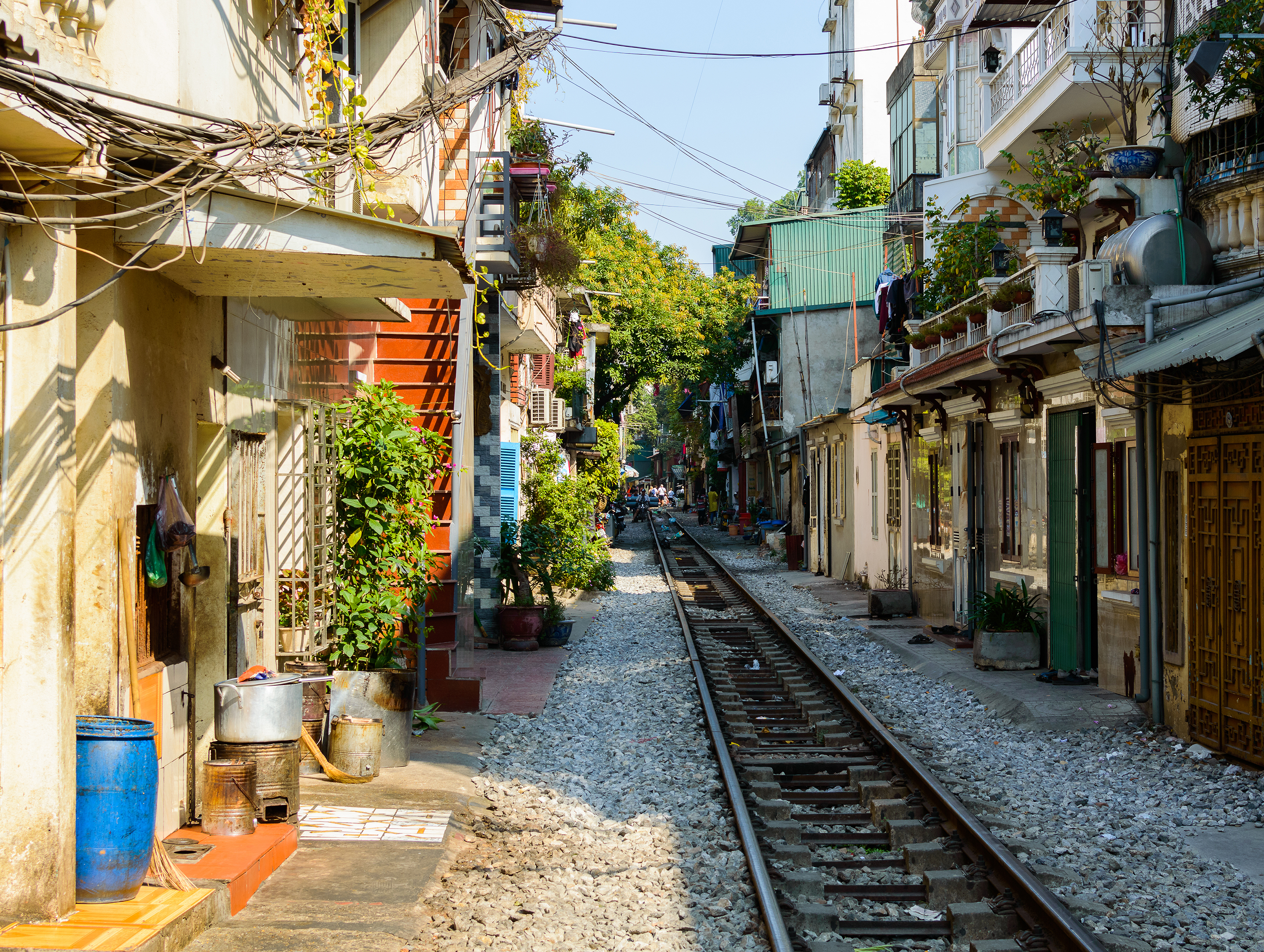 Железнодорожные пути на улице в центре Ханоя