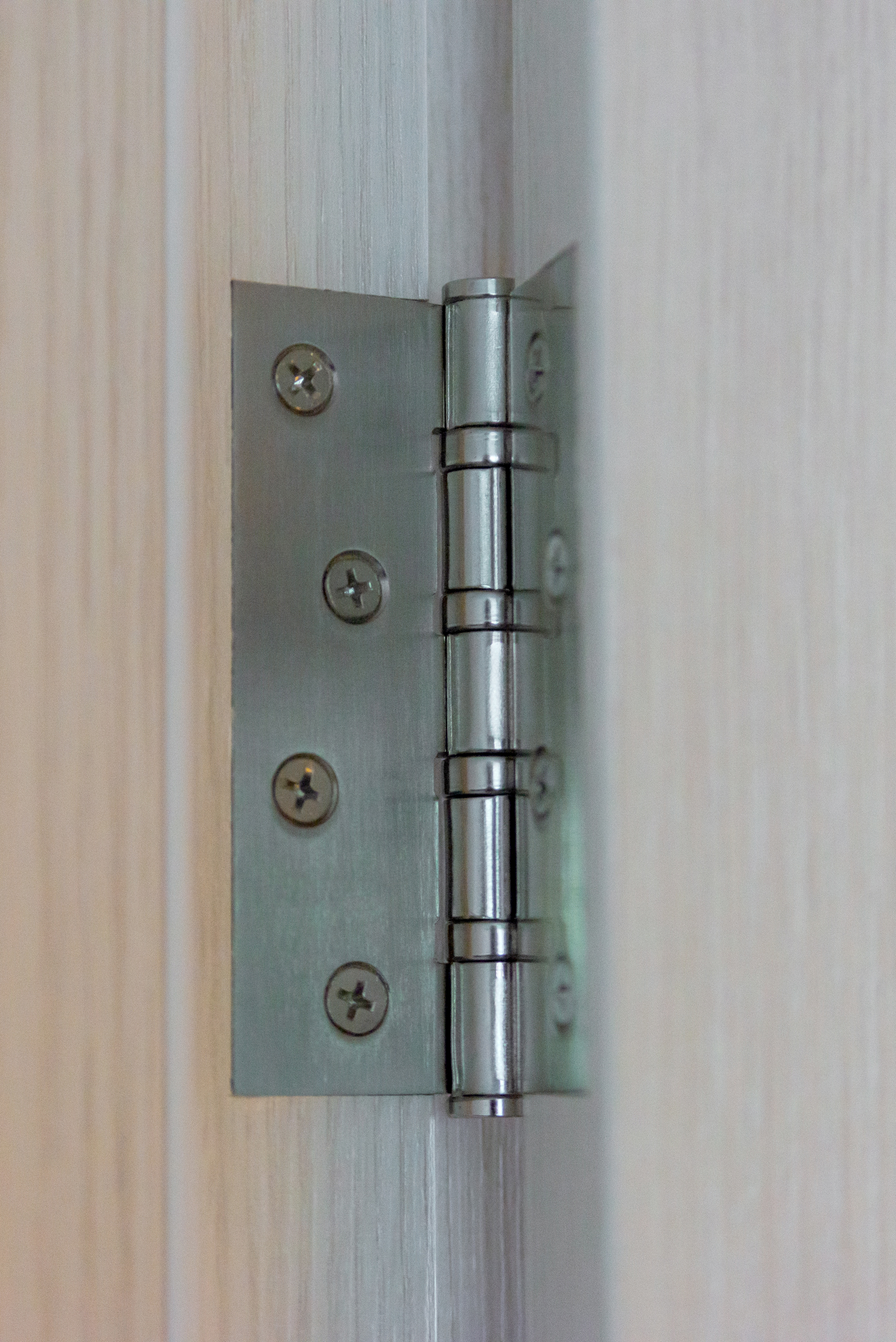 На снимке представлен крупный план металлической петли двери, установленной на двери из светлого дерева с выраженной текстурой. Сцена снята в условиях равномерного, мягкого освещения, что позволяет детально рассмотреть геометрию и поверхность петли. Визуальный акцент сделан на симметрию и прямолинейность конструкции, подчеркивающие функциональность и надежность. Деревянный фон добавляет теплоты и органичности, контрастируя с холодным металлом. Композиция сбалансирована, с акцентом на центральную ось петли, что придает изображению структурированность и упорядоченность. Такой снимок подойдет для иллюстрации тем, связанных с интерьером, строительством, дизайном, техническими деталями и ремонтом. Визуально он может использоваться как образец точности и эстетики функциональных элементов в современном доме или офисе.