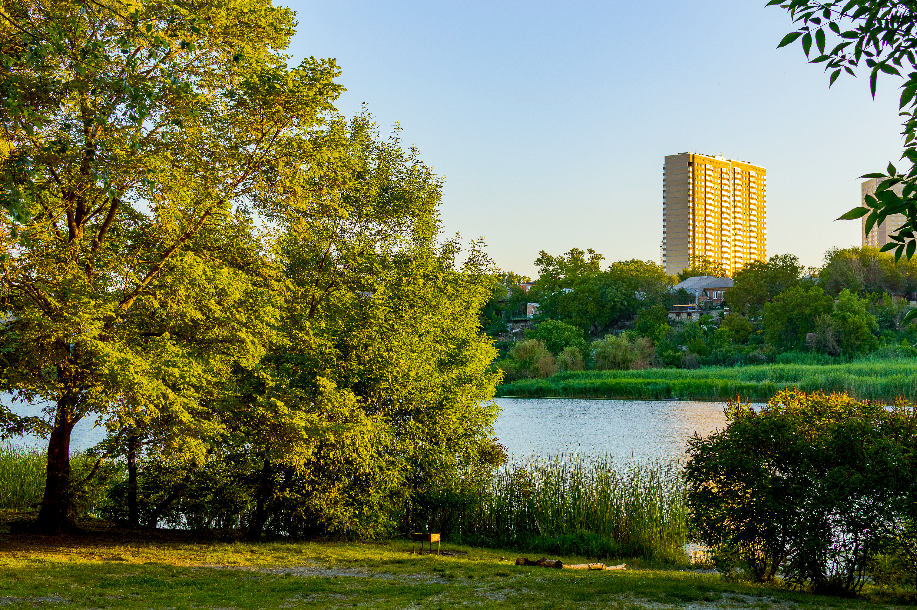 На берегу спокойной зеленой реки, окутанной мягким светом рассвета, раскрывается живописный летний пейзаж, словно вырванный из сказки. Воздух наполнен прохладой утренней влаги, а тени деревьев мягко растягиваются по песчаному и каменистому берегу. Вдалеке виднеются силуэты деревьев с густой листвой, отражающейся в водной глади, которая мерцает под мягким солнечным светом. Река, словно живая синева, обрамлена пышными травами и цветами, которые вдруг начинают светиться в утреннем свете. Вдоль берега разбросаны камни, покрытые мхом и водорослями, а в тени деревьев — небольшие кустарники и цветущие ромашки. Вдалеке, на горизонте, можно разглядеть узоры, созданные отражениями деревьев и облаков в воде, придавая сцене глубину и перспективу. Воздух наполнен ощущением спокойствия, умиротворения и ожидания нового дня, что делает этот пейзаж идеальным местом для медитации, прогулок или просто наслаждения природой.