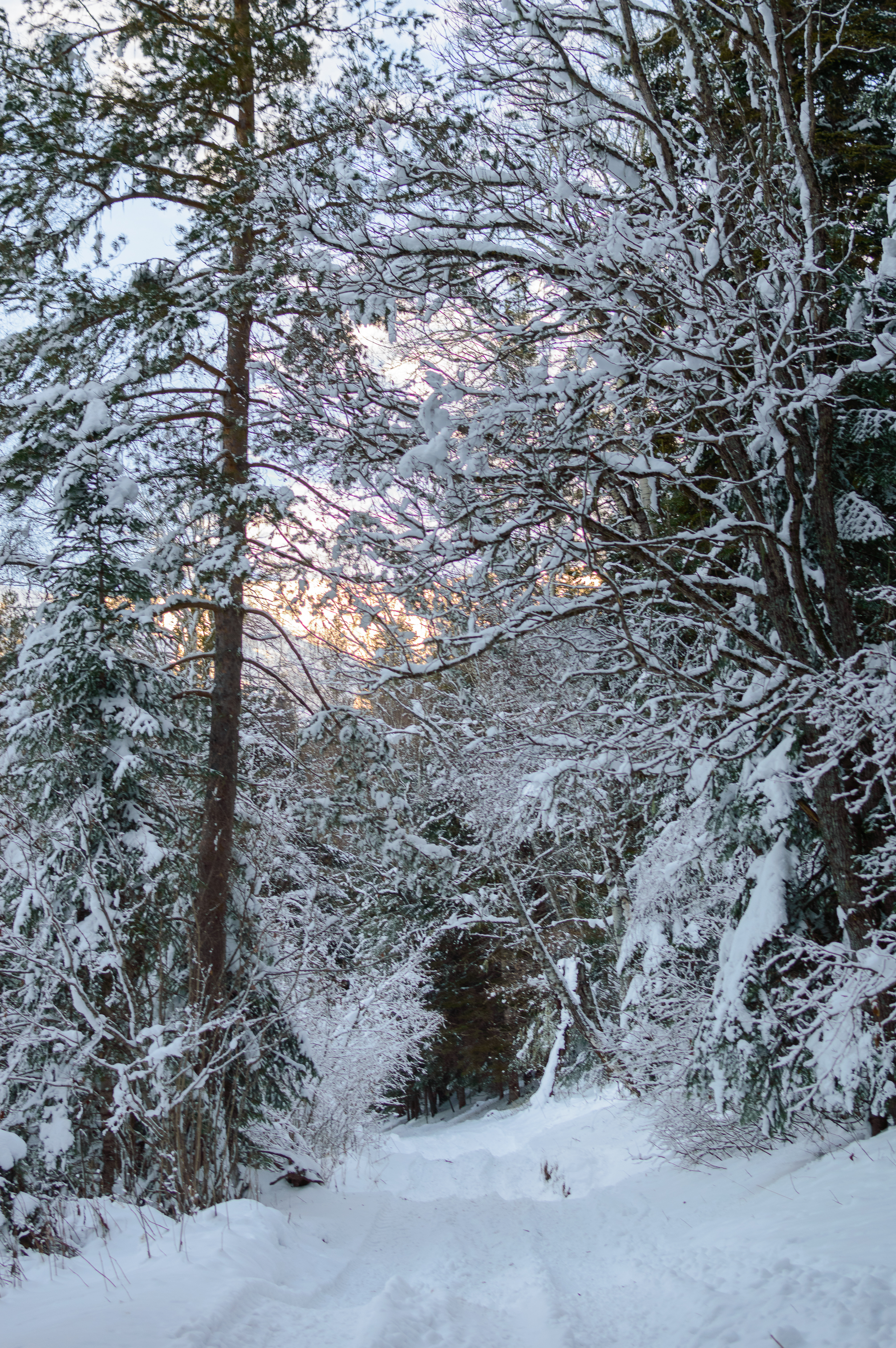 Imagine a quiet winter day when snowflakes gently swirl in the air, covering everything around with a pristine white blanket. This picture is an embodiment of a winter fairytale: a narrow path winding through a dense snow-covered forest beckons you with its mystery and tranquility. Trees adorned with sparkling snowy caps rise on either side of the path, creating a sense of solitude and immersion into a magical world. In the distance, a barely discernible line of trees hints at the depth of the forest and its unexplored secrets. The air is filled with the freshness of a frosty morning, and the silence is broken only by the gentle rustling of snow underfoot – the perfect moment for a walk away from the hustle and bustle of the city to enjoy the beauty of nature and feel harmony with the surrounding world. This landscape seems to have come straight out of a fairytale book where anything is possible.