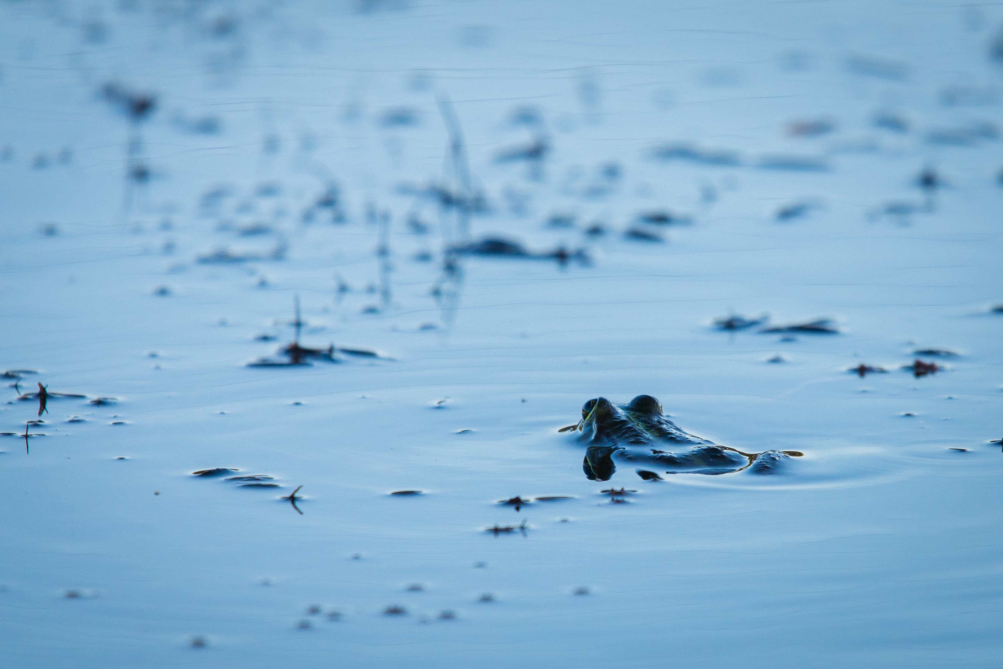 The atmosphere of the photograph is permeated with peace and tranquility. It seems that time has slowed down, and everything around has frozen in anticipation of something important. The color palette mainly consists of green and brown hues, creating a sense of naturalness and harmony with nature. Soft light emphasizes the texture of the frog’s skin and the gleam of the water, adding depth and realism to the image. The mood of the photograph is contemplative and calm; it evokes a feeling of admiration for the beauty of wildlife and a desire to get closer to it. This isn't just a photo of a frog in water; it's a captured moment of unity with nature that gives the viewer a sense of harmony and peace. The shooting style can be characterized as documentary, but with an emphasis on the aesthetic component—the composition is meticulously planned, and color reproduction is flawless, making the photograph a true work of art.