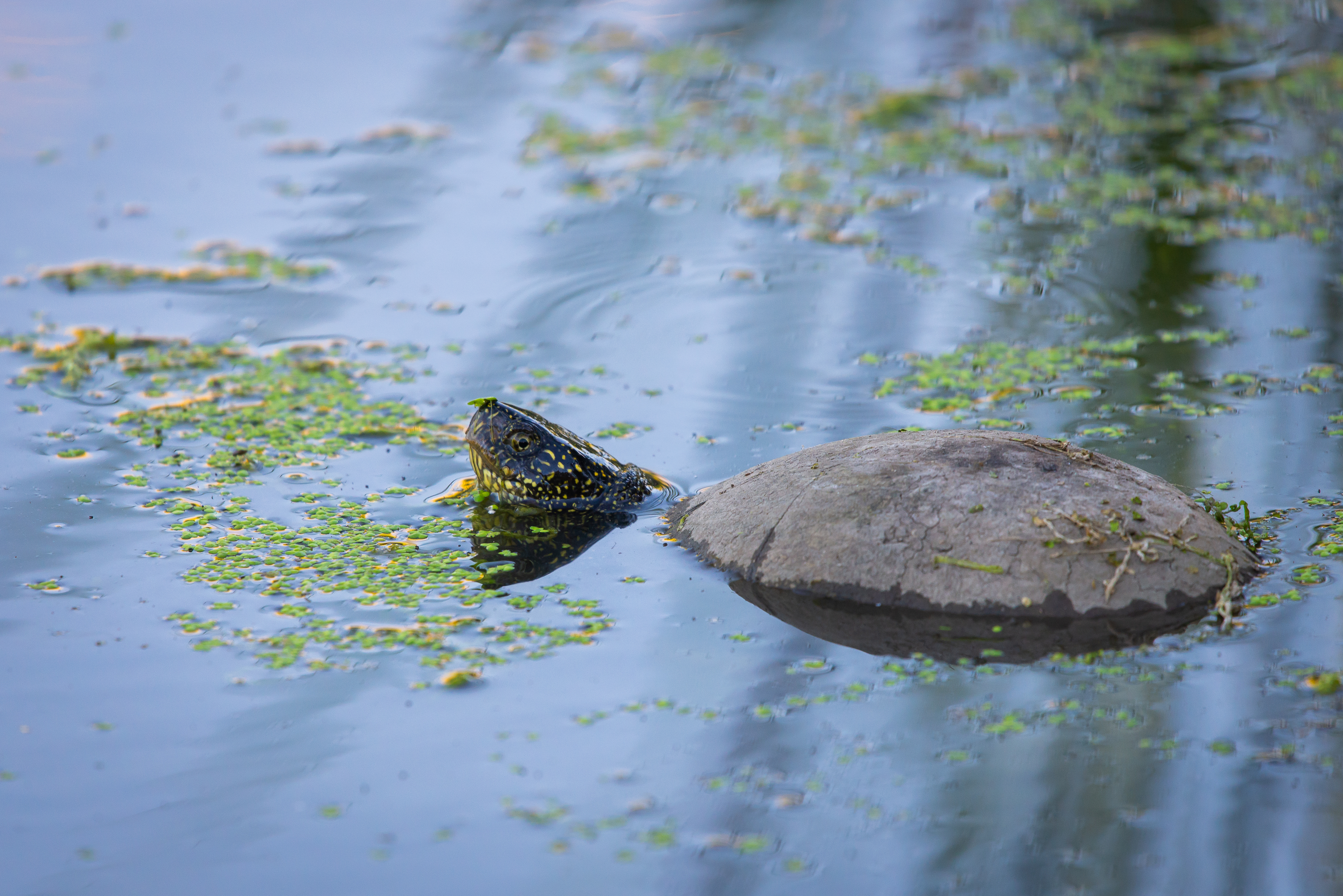 Черепаха в пруду с ряской